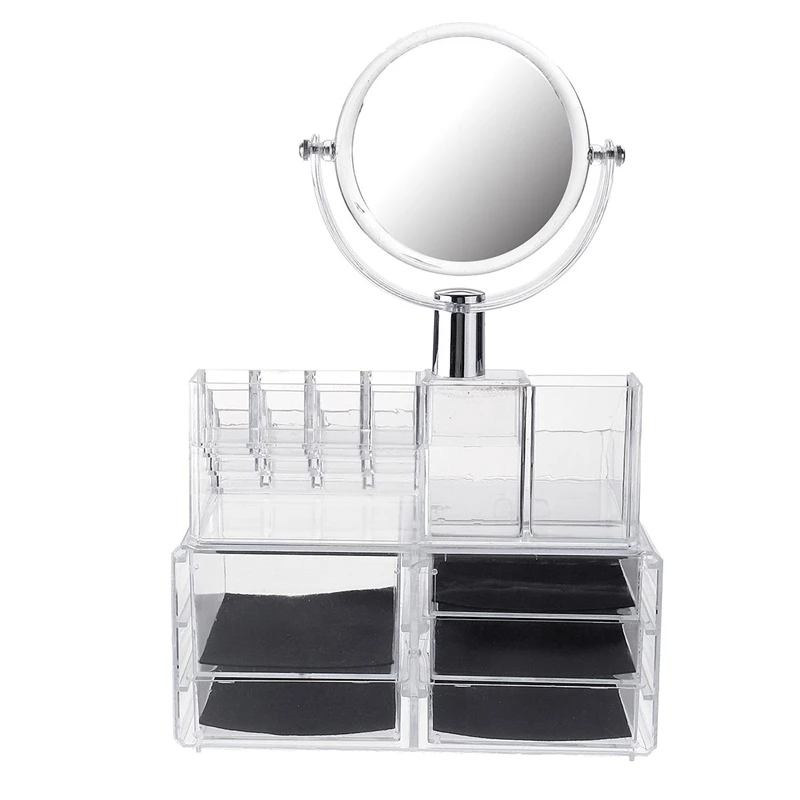 Large Mirror Clear Cosmetic Organizer Box Makeup Storage Drawer Desk Bathroom Makeup Brush Lipstick