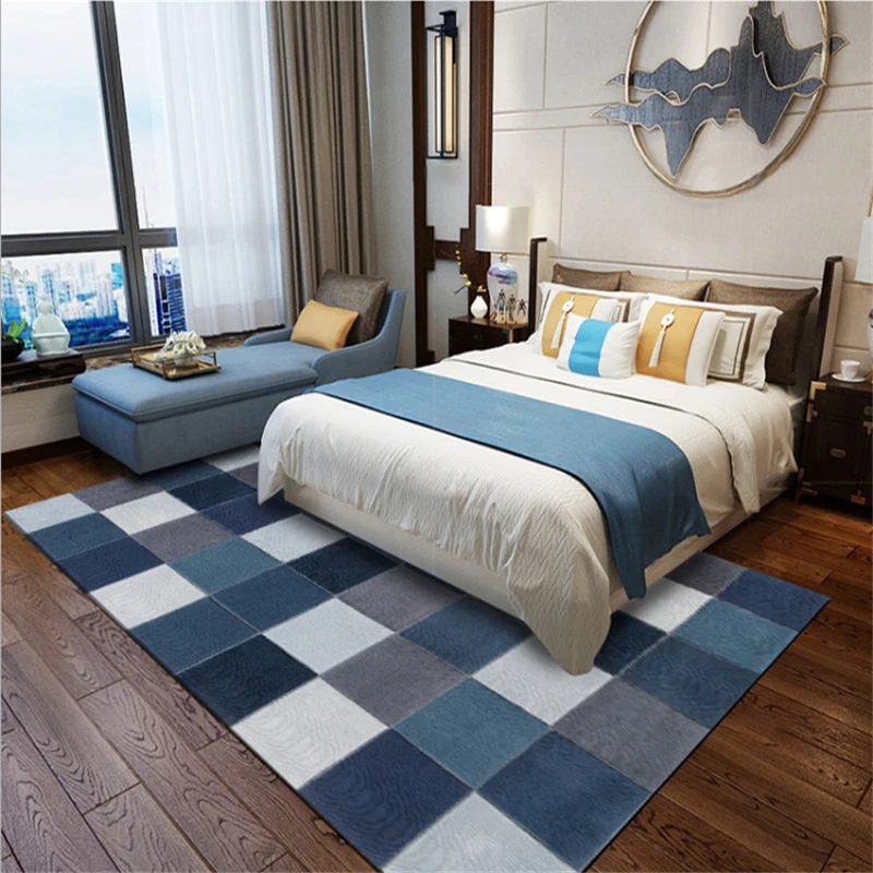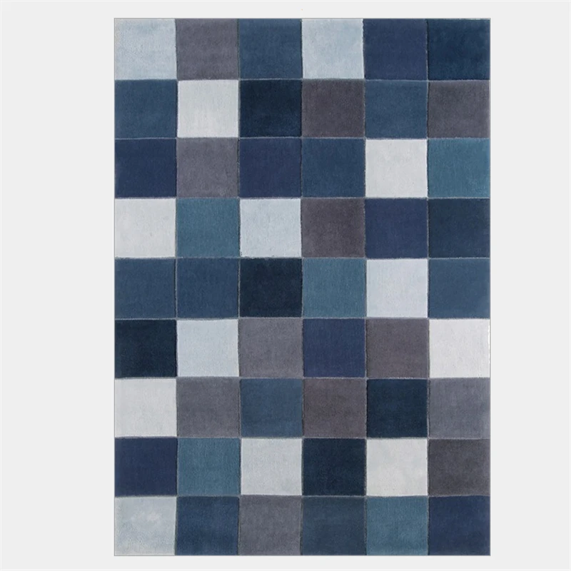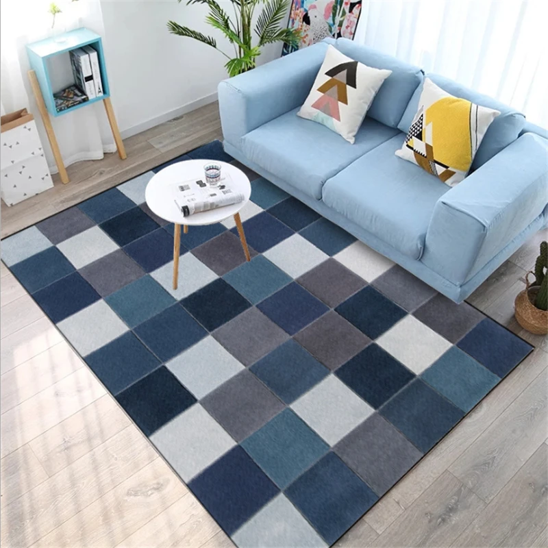 HOT Sale Rugs and Carpets for Home Living Room Minimalist Geometric Square Plaid Blue Carpet Carpet Kids Roo