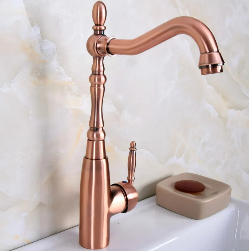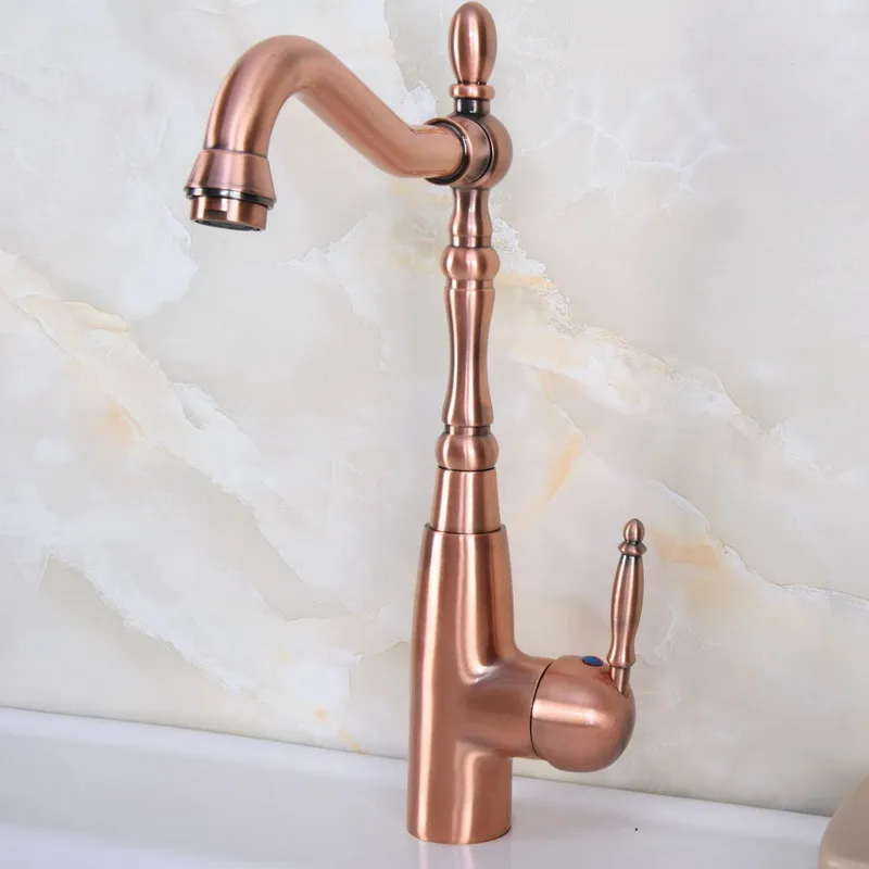 Vintage Retro Antique Red Copper Brass Kitchen Wet Bar Bathroom Vessel Sink Faucet Single Hole Swiv
